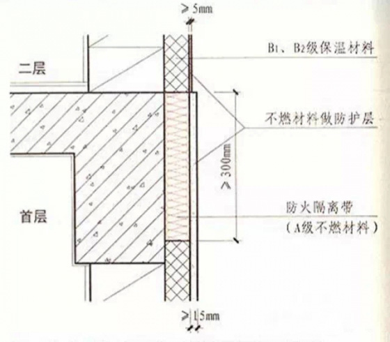 5.在保溫系統(tǒng)中每層應(yīng)設(shè)置高度不小于300毫米且燃燒性能為A級的水平防火隔離帶。防護層厚度首層不應(yīng)小于15毫米,其它層不應(yīng)小于5毫米。