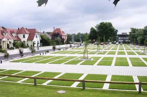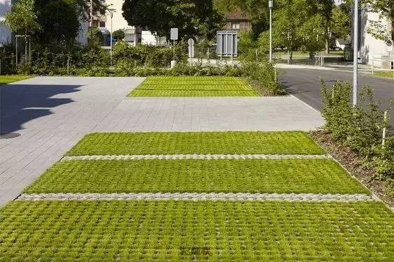 利于更換及修補(bǔ)的防滑鋪裝材料,以及它的透水性,加上鋪設(shè)尺寸符合人體工程學(xué),真是人性、環(huán)保、安全而美觀。而停車場(chǎng)周圍的綠植,起到降溫作用,視覺(jué)上也美化了場(chǎng)景,愉悅內(nèi)心,安全出行,再好不過(guò)。