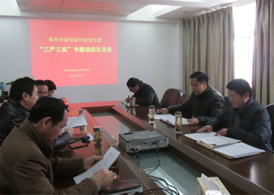 按照市規(guī)建委的統(tǒng)一部署,2016年1月13日下午,滁州市城鄉(xiāng)建設(shè)規(guī)劃設(shè)計院黨支部召開“三嚴(yán)三實”專題組織生活會,院全體黨員參加了會議,會議由院黨支部書記、院長賀玉龍同志主持。市規(guī)建委黨組成員、副主任李勃同志出席并指導(dǎo)會議。