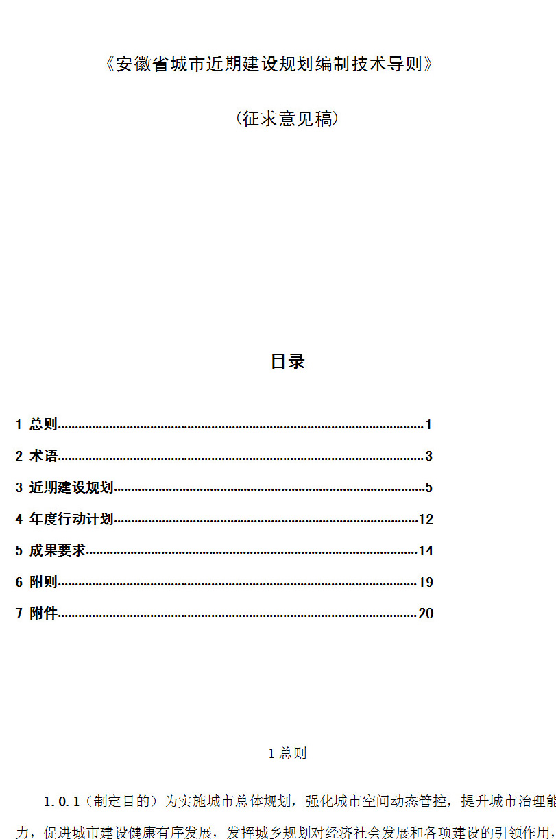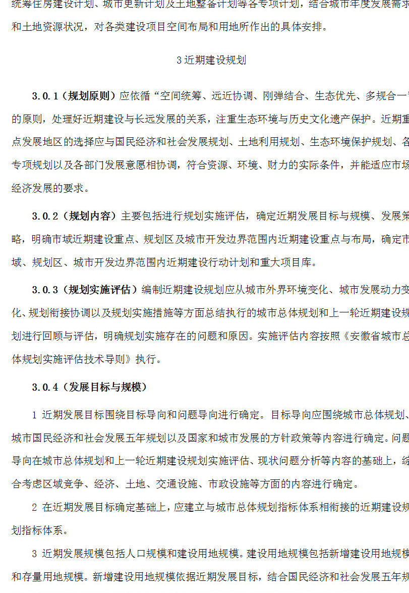 《安徽省城市近期建設規(guī)劃編制技術導則》