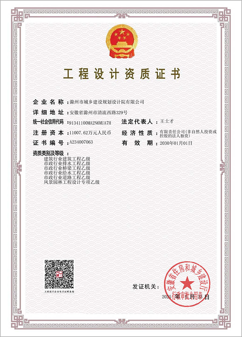 工程設(shè)計資質(zhì)證書(建筑、道路、橋梁、風(fēng)景園林)